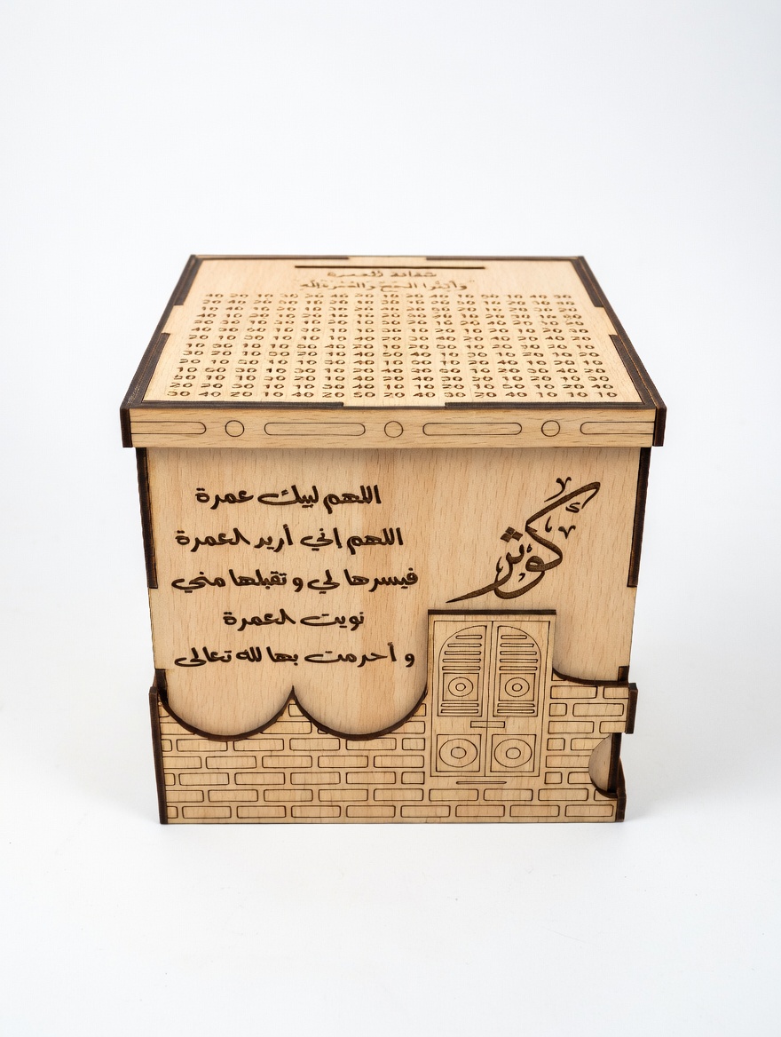 Découvrez cette élégante tirelire en MDF spécialement conçue pour votre projet d’Omra !