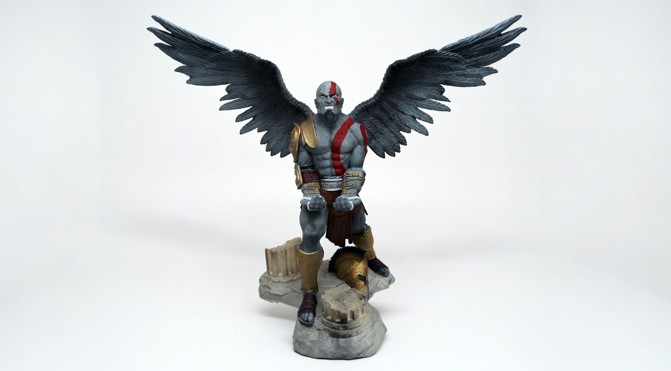 - Détails exceptionnels : Sculpté avec des ailes imposantes, l’armure de combat, des grèves dorées et le visage iconique de Kratos